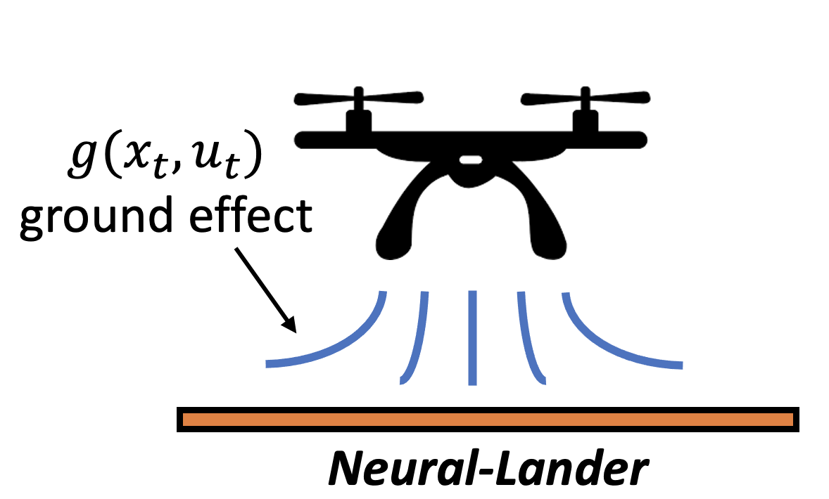 Fig. 17 Visual depiction of the ground effect, the complex aerodynamic effect between the drone and the ground, which is nonlinear, nonstationary, and very hard to model using standard system identification approaches. Adapted from Neural Control blog post.#